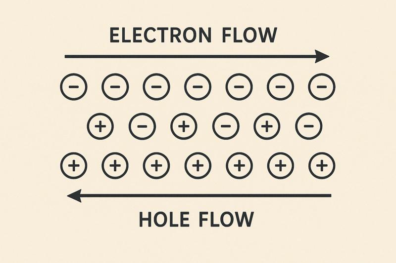 Holes as particles: Here, the earlier “hole” fiction becomes an entire cast member—treated as if it were a real particle with its own mass, mobility, and drift behavior.